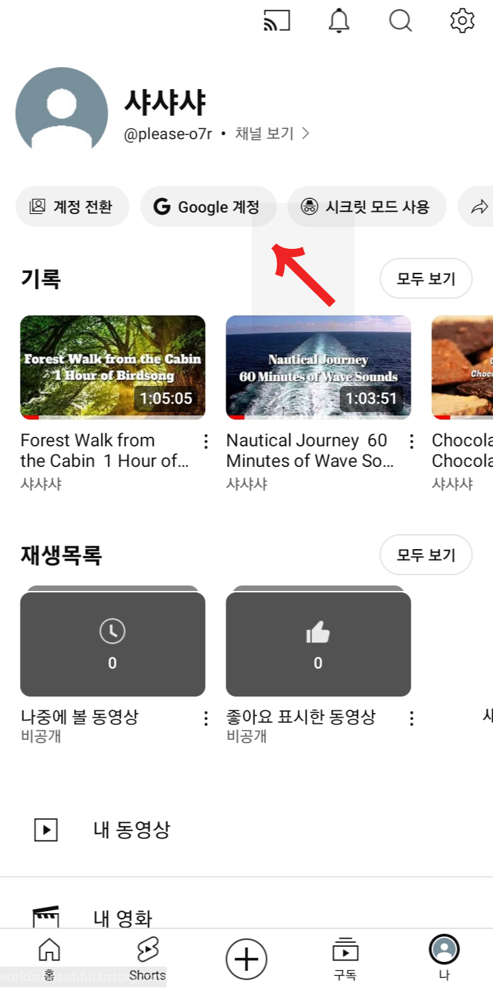 1. 유튜브 앱에 들어갑니다. google 계정을 누릅니다.