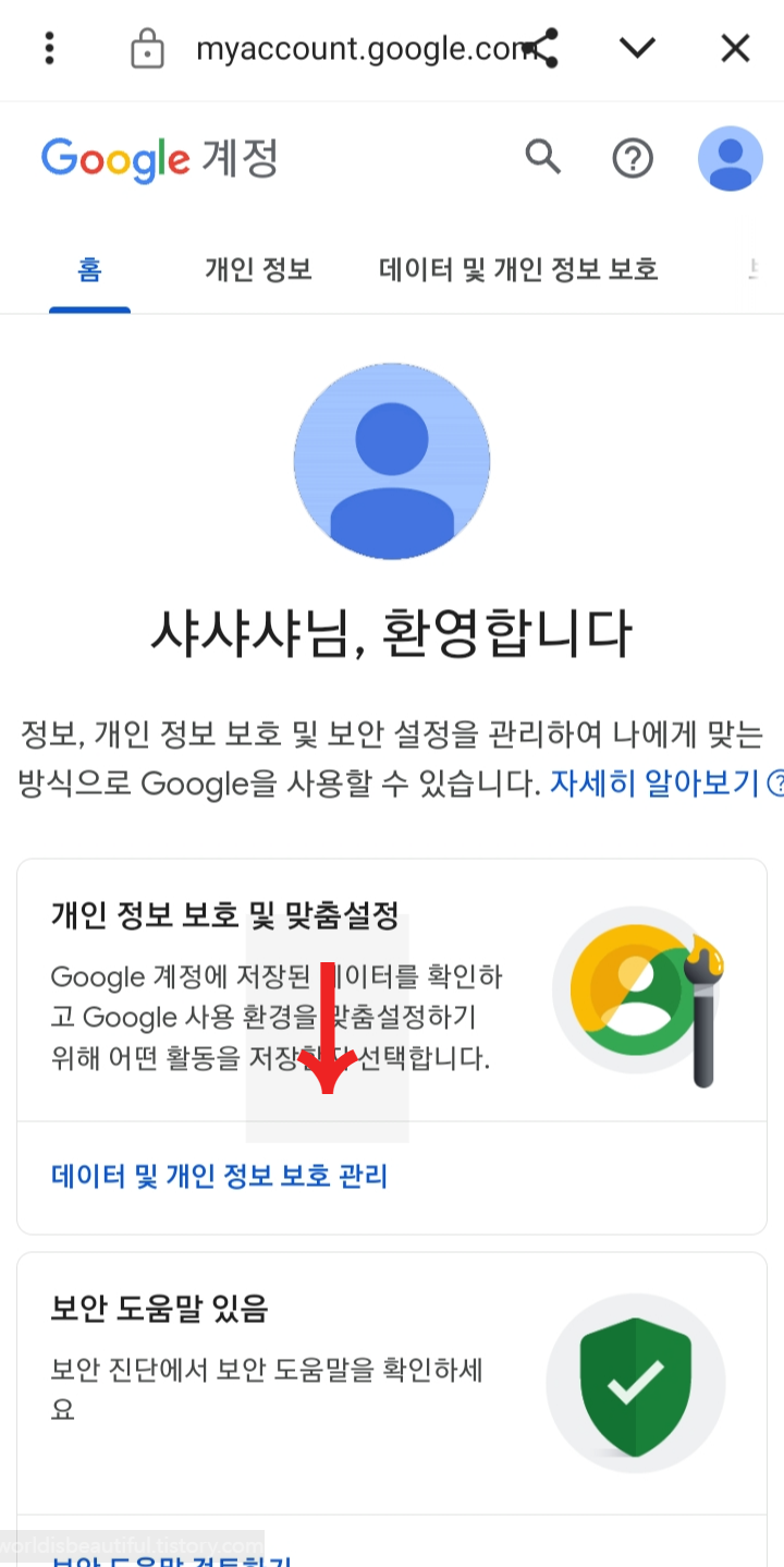 2. 데이터 및 개인 정보 보호 관리를 누릅니다.