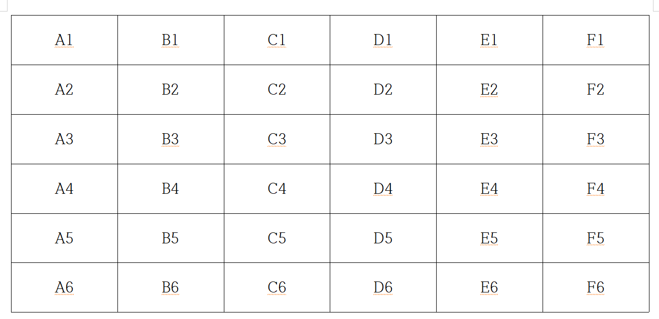 위의 그림처럼 표마다 위치가 정해져 있습니다。